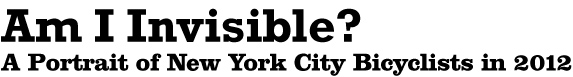 “Am I Invisible? A Portrait of New York Bicyclists” is an open call for photographs and photography-based art that capture the style and diversity of New York City's distinctive bicycling community. A portion of the entry fee will be donated to Transportation Alternatives, New York City's leading transportation advocacy organization.